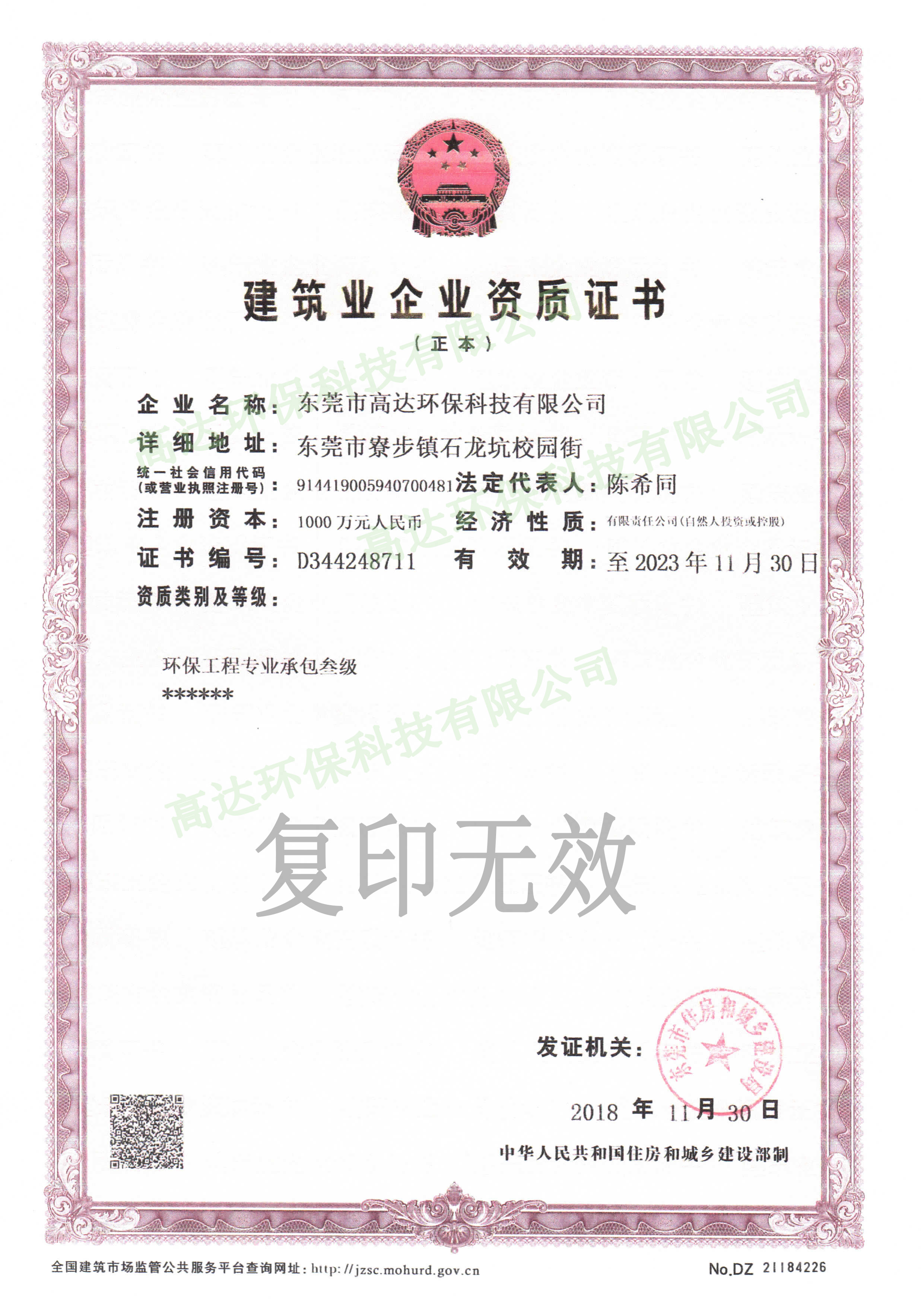 高達(dá)環(huán)保公司注冊(cè)資金1000萬(wàn),現(xiàn)為省環(huán)保產(chǎn)業(yè)協(xié)會(huì)會(huì)員。規(guī)范化的管理,專業(yè)的環(huán)保技術(shù)人員,龐大的工程案例,嚴(yán)格按設(shè)計(jì)要求來(lái)控制工程質(zhì)量。是我們?yōu)榭蛻糇龅谋WC。環(huán)保設(shè)備擁有多個(gè)專利認(rèn)證,保證處理效率,通過環(huán)保驗(yàn)收。